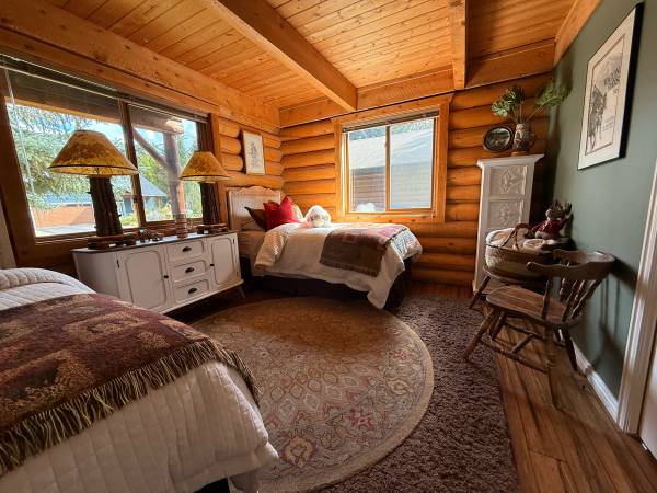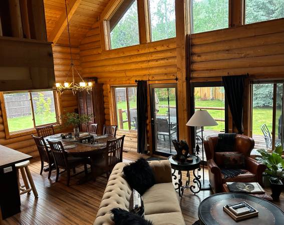 Wonderful fly fishing, hiking, biking in summer and skiing, snowboarding etc in the winter. This charming log home has views from every window and is ready for you!