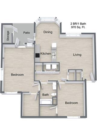 Unit Information: 2 Bedroom | 1 Bath Unit Size: 970 sq ft Monthly Rent: $1295