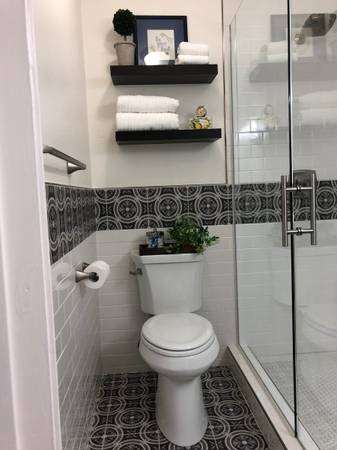 You will have off street parking and use of the two car garage with automatic door opener for your car and storage of your snowboard and bike.