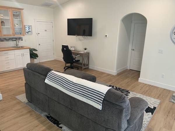 This fully furnished unit is a 1 bed 1.5 bath with an attached garage, fenced yard, and a full kitchen. The Shadowleaf neighborhood is located in a newer section of Twin Falls approximately 3 blocks south of the hospital. All utilities (gas, electric, internet, water, sewer and trash) are included in the monthly rate. Pots, pans, silverware, dishes, bedding, and towels are already stocked in the unit. The unit also includes a washing and drying machine. The only thing that you need to bring to move into this unit is your toothbrush.