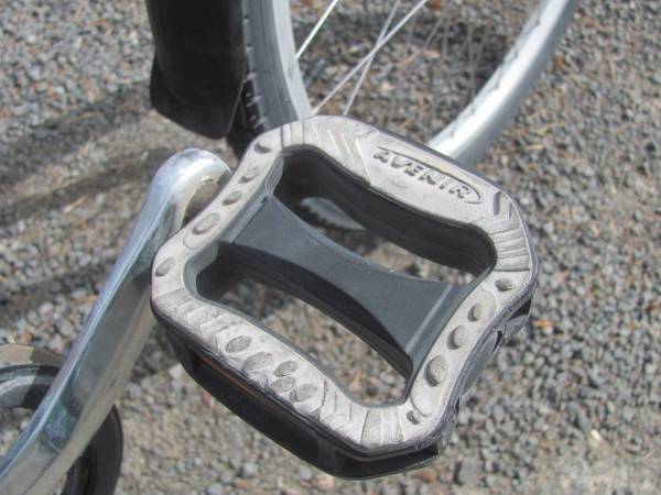 26" Raleigh "Gruv" Long Frame 7 Speed Comfort Ride Bicycle; Blue in color; 16" low bar alloy frame is extended approx. 6" to provide a more comfortable slightly recumbent ride/pedaling; Deluxe spring supported avenir seat on an alloy post with quick release post clamp; Shimano Altus equipped with Shimano RevoShift indexed 7 speed grip shifter; 26" X 1.75" Forte Gotham tires on X-Rims alloy wheels with new rim liners and new front inner tube with quick release axles; Adjustable neck with upswept alloy handlebars with deluxe hand grips; TekPro alloy brake handles controlling TekPro linear pull cantilever brakes; Avenir pedals; Rear Megarange sprocket cluster has a 34 tooth low speed sprocket; Bike is equipped with rear mounted luggage rack, fenders, reflector set and an alloy water bottle rack; This bike is ready to cruise; Price is only $159.00 cash; Call or text Rex @ show contact info