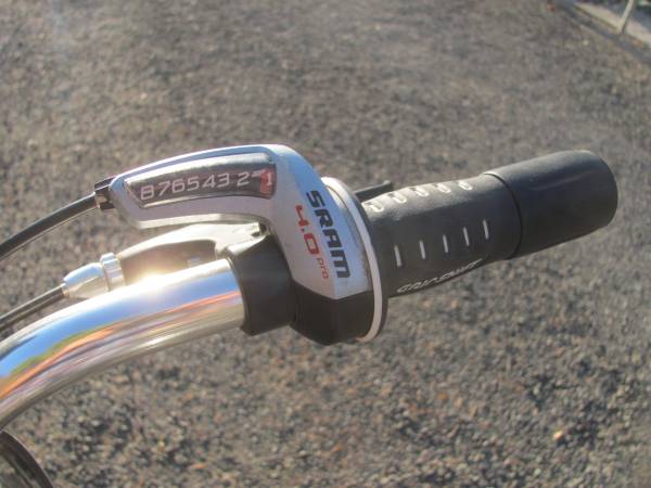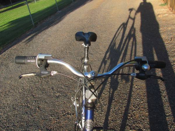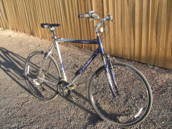 700 TREK 7300 Multitrack 24 Speed Tall Frame Bicycle; Blue/ Polished aluminum in color; Alpha Custom Aluminum 24" Frame; RST front shocks; Shimano S-RAM X7 equipped with indexed grip shifters with sprocket indicators; TekTro linear-pull cantilever brakes; 700 X 35 Bontrager Select Invert Triple Puncture Protection Hard Case tires on WTB Dual Duty alloy wheels with quick release axles; Bontrager crank with deluxe pedals; Adjustable neck with riser handlebars; Upgraded Dolce seat with quick release seat post clamp; Bike is complete with alloy water bottle rack, alloy kickstand, and reflector set; Very nice ride; Price is only $249.00 cash; Call or text Rex @ show contact info