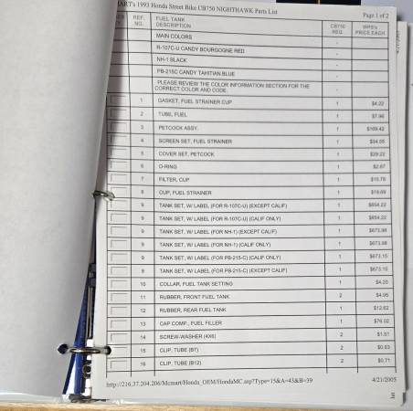 I have this Service Manual and Parts List that should have gone with the bike when it was sold years ago, but did not. So I need to find someone who can use it as I hate to just throw it out. Manual and parts list comes in a 3-ring binder in perfect shape. Could ship media mail if needed. Otherwise shipping will be $15. Call if you have questions.