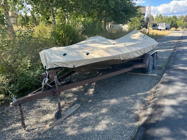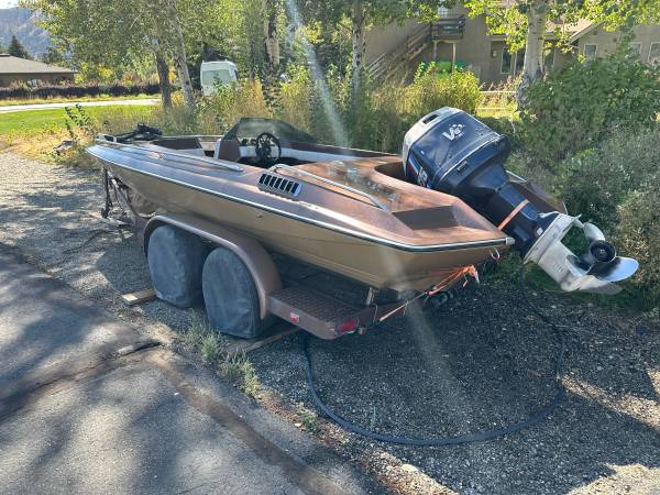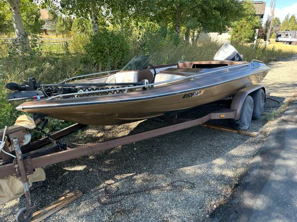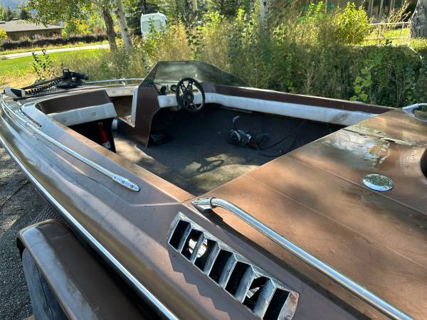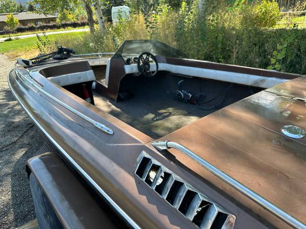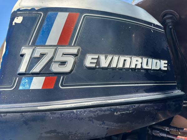 19ft Glastron-Carlson with 175hp 2-stroke Evinrude. Motor turns over but I haven’t got it running. Seats removed because they were too far gone. Hull is solid. Trailer is solid. $1500 obo