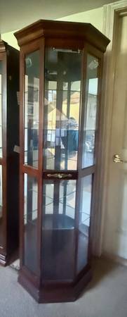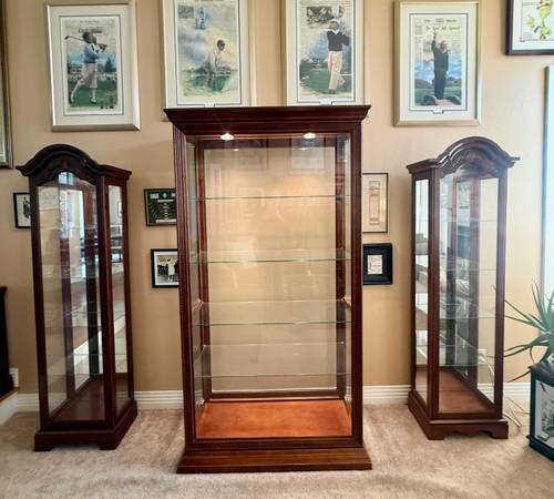Beautiful, well-cared-for curio cabinets used to display a golf collection. All in excellent condition and ready for a new home. Perfect for displaying collectibles, glassware, or keepsakes. You will need to pick it up.