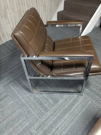 Vintage Cromecraft love seat and matching chair. In really good condition for their age. Very well made and sturdy. Dark brown with chrome sides and bottom. Absolutely screams Mid Century Modern!!...