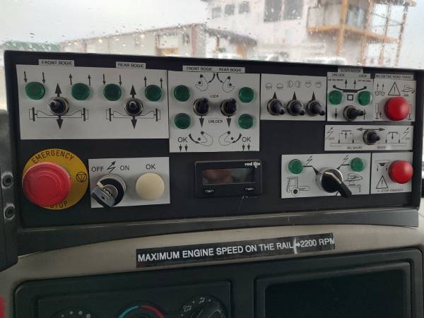 2010 International 7400 Hi Rail, Maxforce 9 diesel engine, 860 miles, 556 hours, Allison automatic transmission, air conditioning, air to the rear. Geismar V2R850CGR Hi Rail system, double bogey front and rear, two Fiamm Motive Power battery banks, Phoenix Inverter, rail cameras, Palfinger PK8500 7,275 pound capacity knuckle boom crane, two man 440 pound capacity bucket attachment, good tires, former municipal truck
