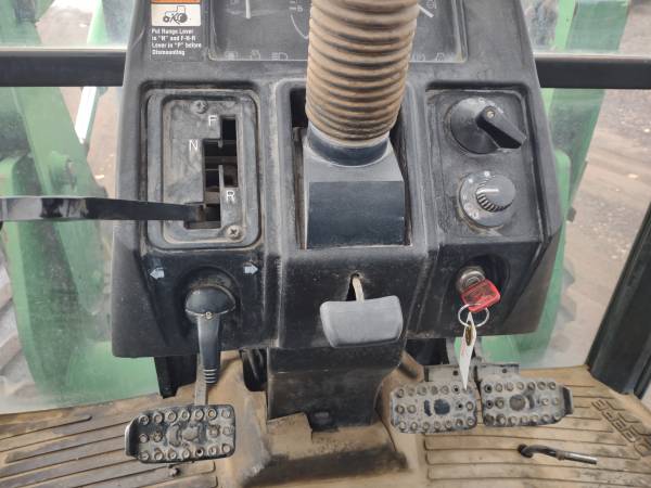 John Deere 5420 diesel tractor MFWD, John Deere 81 horsepower 4045 diesel engine, 12 speed power shuttle transmission, 3,800 hours, cab with heat and air conditioning, front end loader, 2 rear...