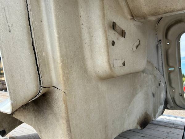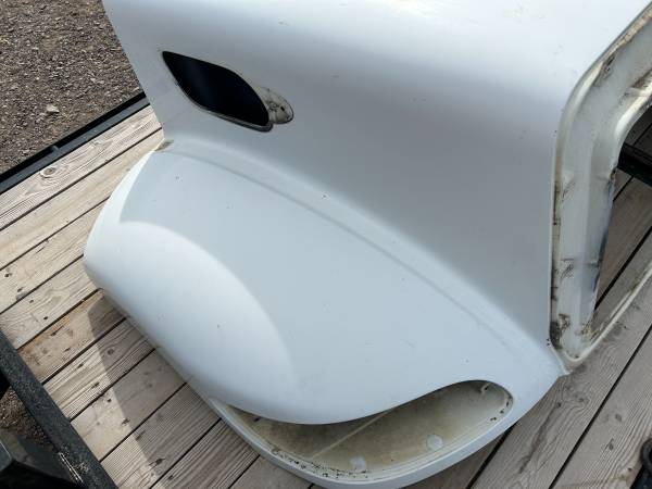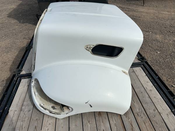 I have a used hood off of a 2012 Peterbilt 337. It will fit Peterbilt models 330, 335, 337, 340, 348. The exterior of the hood is in very good condition; however, the interior is not. This is a Metton material hood. The glue has let go on the reinforcement panels which allowed the hood to flex and crack out on the inside. This is a good candidate for someone that is looking for a hood to get by with or has the time to re-glue and patch it.