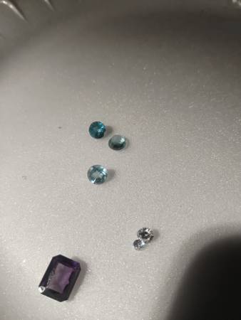 Two diamonds approximately 1/4 crt and 1/8 crt. Three aqua Stones approximately 1 crt each And a color changing lab grown alexandrite approximately 4 crt. All for 400 or make a offer on individual...